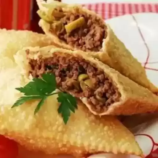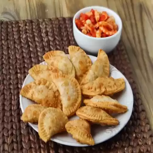 Delicioso pastel de queijo, presunto, calabresa, tomate e alho crocante