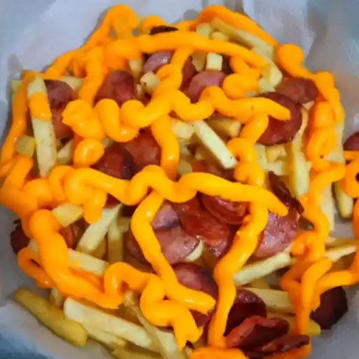 Pão, carne, queijo, ovo, calabresa, salada e batata palha